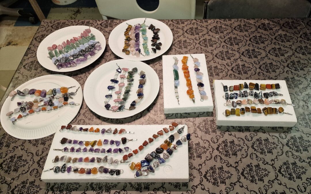 På klubbmötet pratades om Bergarter. Efter det började fler av oss att tillverka armband som ska vara till Mikkaeli i höst.